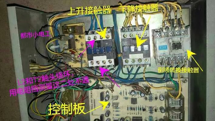 經(jīng)觀察、診聽(tīng)到控制箱里咔咔的聲音,好像有什么接觸不良;電機(jī)能手動(dòng)下降說(shuō)明電機(jī)沒(méi)問(wèn)題,調(diào)壓器也沒(méi)問(wèn)題,問(wèn)題出在控制箱里。